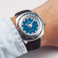 またケースバックが逆台形に成形されており、手首との設置面が少ないため、見た目よりも大きな時計を着けているという感覚がしないのもポイント。