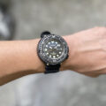 暗闇で文字盤全面が発光するインディグロナイトライト を付けると、文字盤上のインデックスや、キャラクターたちが行きかう迷路が浮かび上がる仕様となっており、秒針の先端に施されたパックマンがゴーストたちを追いかける様子が楽しめる。