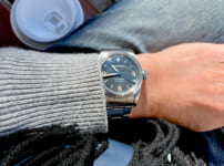 文字盤とトーンを合わせたメッシュブレスレットに加え、カーフレザーストラップが付属するのも魅力。ピンレバーにより工具無しで簡単に付け換えできるので、その日の服装や気分に合わせて、好みのストラップでアレンジを楽しめる。