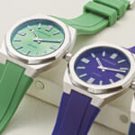 クラブ40にラインナップされた最新カラーを採用しているのもポイント。 “セージ グリーン”はトレンドのグリーン系に当たるが、繊細で清潔感のある色合い特徴。個性が強すぎないのでファッションを選ばずに着けらられるカラーと言えるだろう。もうひとつの“インペリアル パープル”は上品で落ち着いたトーンが魅力。サンレイ仕上げの文字盤が、光の当たり方で、文字盤の外側に向かって繊細なグラデーションを生み出している。ラグスポデザインならではの高級感のあるソリッドなデザインに、カラーダイアルとシリコンラバーベルトのコンビネーションでカジュアルなアクセントをプラス。 “大人の遊び心”をコンセプトに掲げる“ノースゲイト ウォッチズ”らしい、ユニークかつ大胆なデザインが魅力的だ。