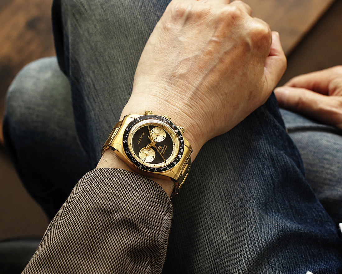 加えて、逆パンダ文字盤のブラックも少しグレーがかった前作よりも真っ黒にすることで、ゴールドとのコントラストを強めにするなど、ファッションアイコンとしてもかなり遊べる仕上がりとなっている。