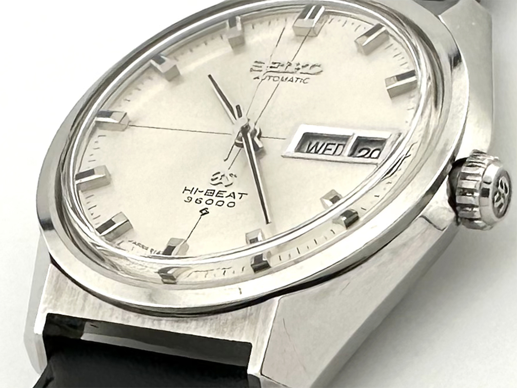 アイコニックなラウンド型のSSケースは、裏面の“ONE PIECE CASE”の表記が示すとおり、ケースと裏ブタが一体化したワンピース構造を採用することで、防水性能を高めている。一見すると、通常のスナップバック式の裏ブタと同様に開けることができそうな見た目だが、継ぎ目のない一体型のケースであるため、コジアケ工具で傷をつけないように気を付けたい。ムーヴメントを取り出す際には、専用工具で風防を外して文字盤側からアクセスする必要があるのだ。その優れた防水構造もあって、本個体の針や文字盤には目立った腐食や変色は見られず、非常に良好なコンディションを保っている。