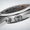 メタルの八角ベゼルには、モダンインダストリアルデザインでも多く見られるチェッカリングパターンを施し、メタルベゼルや機能表示をマーキングした赤いアクセントカラーが機能性を視覚的に際立たせる。