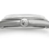 文字盤の世界を堪能するため、サファイアボックスクリスタル風防(両面AR コーティング)を採用しているのも特徴だ。メタルベゼルを持たず、サファイアクリスタル製のボックスクリスタル風防が文字盤面とフラットに配置されており、どの角度からも文字盤の立体構造をクリアに確認できる。