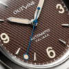 ムーヴメントはセイコー製の自動巻きムーヴメント”NH35”を搭載。裏ブタはシースルーバック仕様で、約41時間のパワーリザーブを備えるムーヴメントを鑑賞できる。ベゼルとインデックスには夜光塗料が塗布され、暗所の視認性も抜群だ。