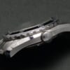 レギュラーモデルのケースとブレスレットは、グランドセイコーの独自素材であるブライトチタンを採用している。重量がステンレススチールより 約30%軽く、純チタンよりも明るい素材であるため、“ザラツ研磨”を駆使して磨き上げることによって、美しい輝きを放つ。