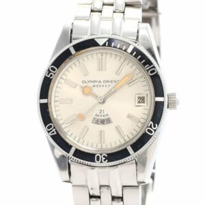 【写真の時計】オリエント オリンピアオリエント ウィークリー 21 ダイバー。Ref. 0-19639A。SS(38mm径)。手巻き。1960年代製。取り扱い店/BEST VINTAGE
